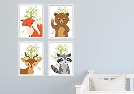 Satz Von 4 Waldtiere Kindergarten Zum Ausdrucken Birken Baum Drucken Tierkinder Kunst Wo Ausdrucken Kinderzimmer Kunst Kinderzimmer Ideen Tierplakate
