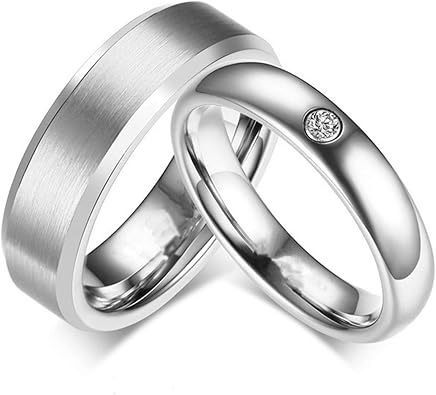 Bishilin 2 Stucke Edelstahl Ringe Fur Ihn Und Sie Hochglanzpoliert Matt Zirkonia Rund 4mm 6 Mm Paarringe Hochzeitsringe Verlobung Ring Silber Damen Gr 52 16 6 Herren Gr 52 16 6 Amazon De Schmuck