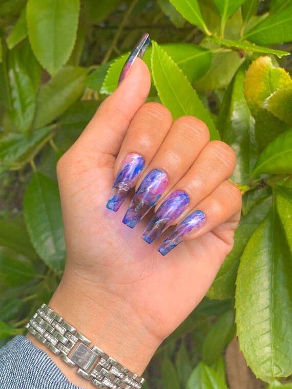 Blueberry Swirl Set Fake Nails Press Ons Press On Nails Etsy