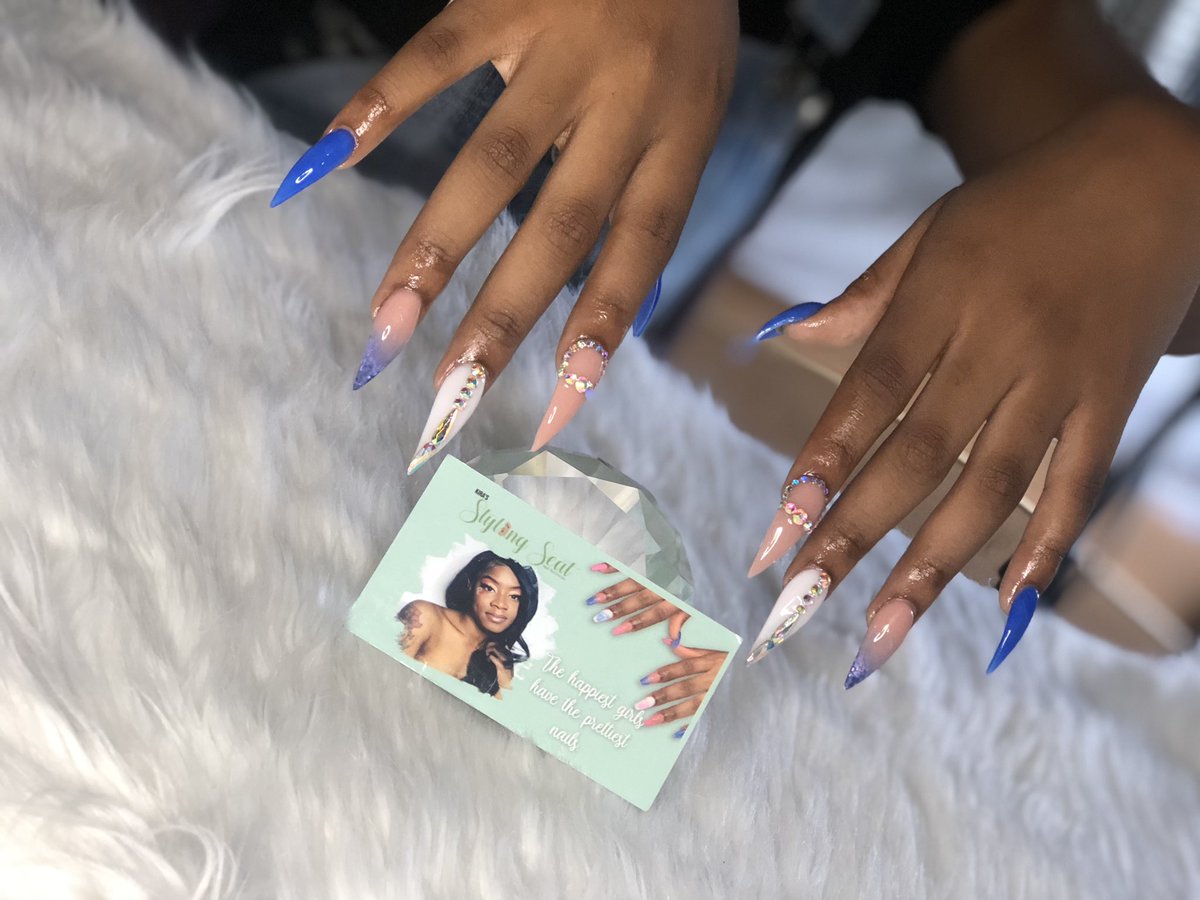 Maya On Instagram Blueberry Swirls Nails Mississippinailtech Newyorknails Blue Acrylic Nails Long Acrylic Nail Designs Best Acrylic Nails