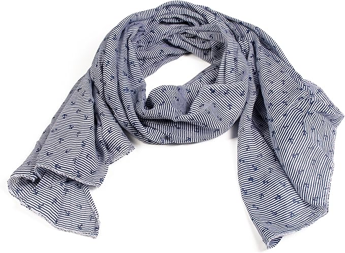 Fashionchimp Schal Aus Baumwolle Und Seide Fur Damen Mit Asymetrischem Schnitt Und Maritimen Streifen Anker Print Amazon De Bekleidung
