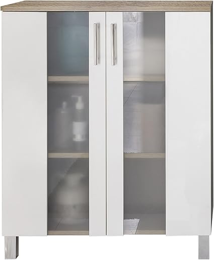 Trendteam Smart Living Badezimmer Schrank Kommode Porto 65 X 80 X 31 Cm In Korpus Eiche Sagerau Hell Dekor Front Weiss Mit Viel Stauraum Amazon De Kuche Haushalt