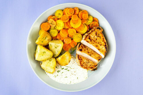 Zartes Schweinesteak Mit Cremiger Sauce Dazu Kartoffeln Und Glasierte Karotten Dinnerly