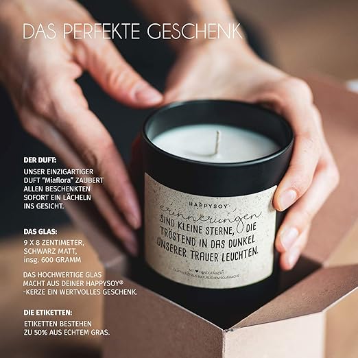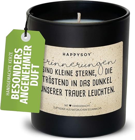 Happysoy Kerze Fur Trauer Beileid Aussprechen Duftkerze Im Glas Mit Trauerspruch Aus Sojawachs Handgemacht Nachhaltiges Personliches Geschenk Kondolenzgeschenk Trauerkerze Als Erinnerung Amazon De Kuche Haushalt