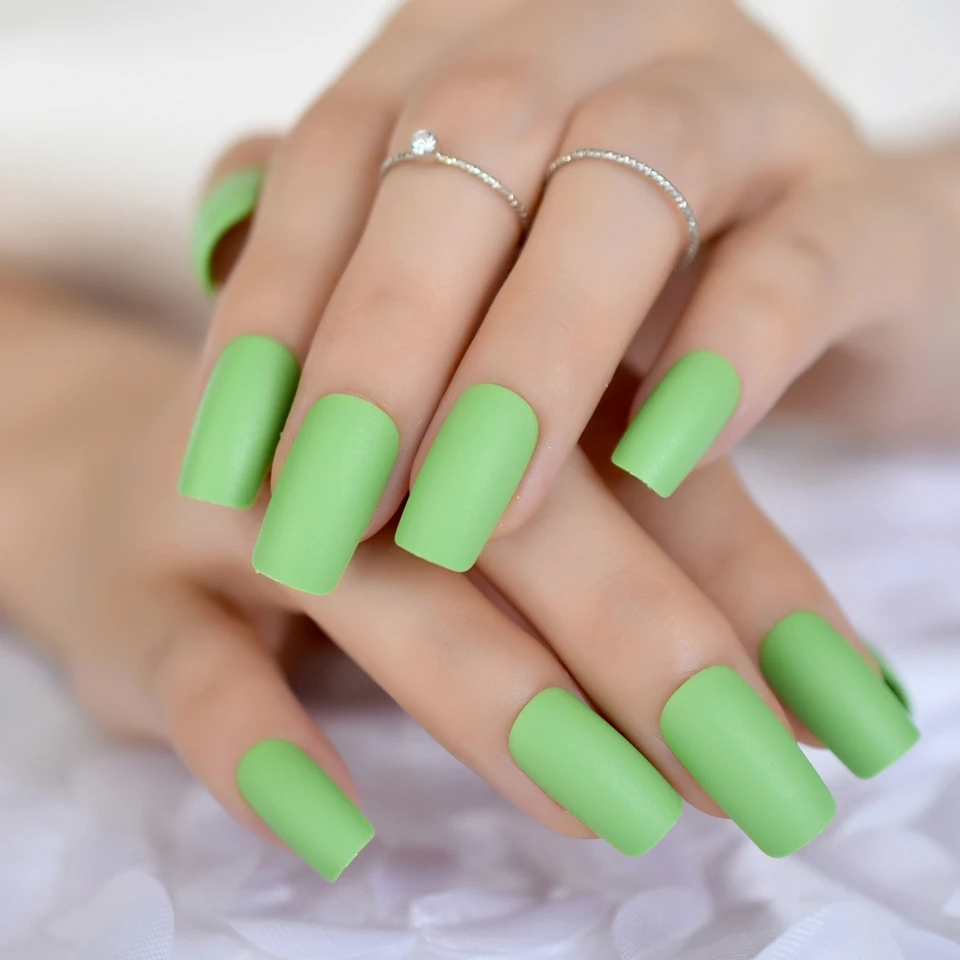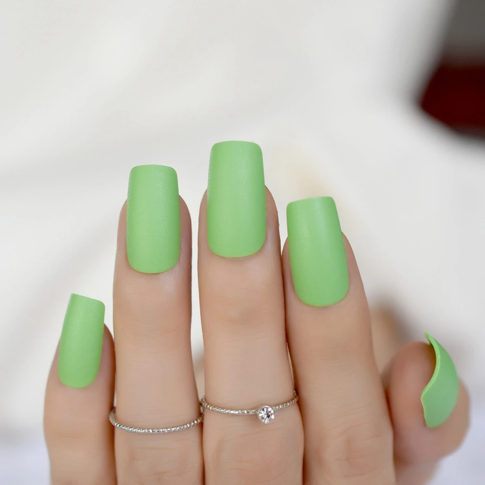 Frosted Instant Fake Nails Matte Green Square Nails Art Diy Tips Ladies Slim Medium Long Designed Artifical Nail Tips Choose False Nails Aliexpress