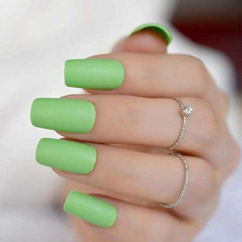 False Nails Frosted Instant Matte Green Square Nails Art Diy Tips Ladies Slim Medium Long Designed Artifical Nail Tips Choose B Amazon Co Uk Beauty