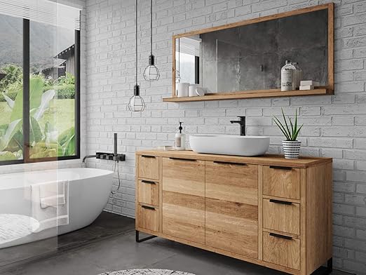 Woodkings Badset 2teilig Waschtisch Mit Spiegel Sydney Echtholz Waschtischunterschrank Badmobel Badezimmer Mobel Holz Unterschrank Badschrank Wildeiche 138x45 Amazon De Kuche Haushalt