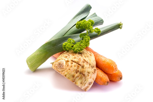 Bildagentur Pitopia Bilddetails Suppengrun Simone Voigt Bild Suppengemuse Suppengrun Sellerie Mohren Petersilie Lauch Porree Gemuse Roh Bundel Ernahrung Nahrungsmittel Wintergemuse Freisteller