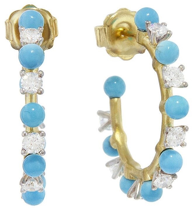 Irene Neuwirth 3mm Kingman Turquoise Sphere Full Cut Diamond Yellow Gold Hoop Earrings Shopstyle