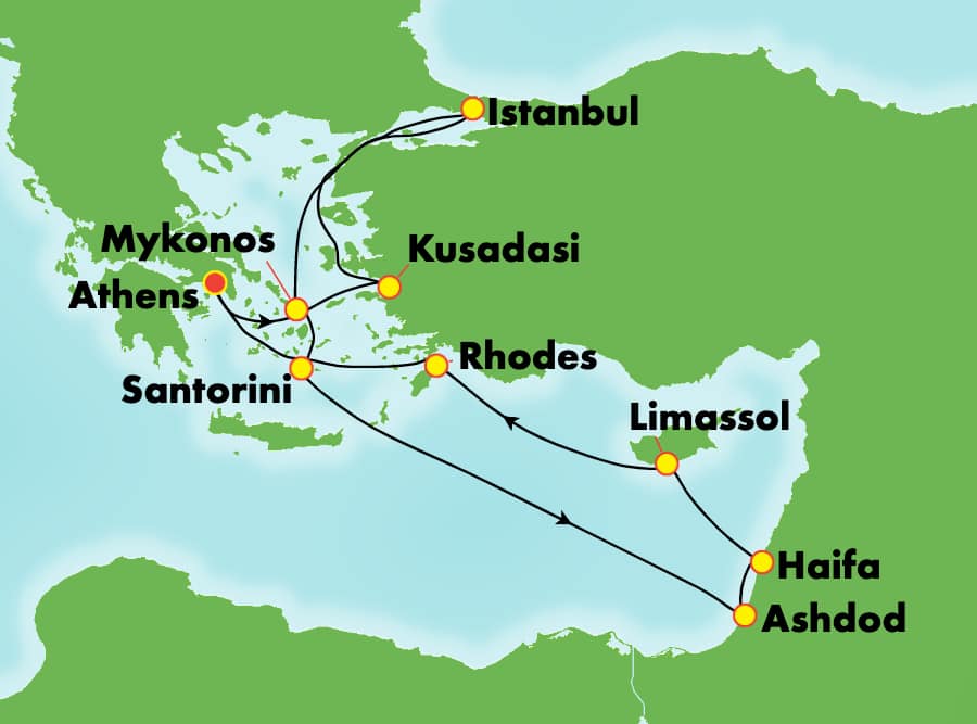 10 Day Greek Isles Round Trip Athens Santorini Mykonos Israel Norwegian Cruise Line