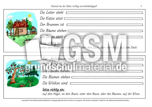 Prapositionen Satze Bilden 1 6 Satze Bilden Prapositionen Deutsch Klasse 2 Grundschulmaterial De