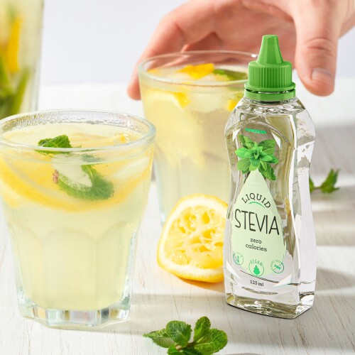 Ingredients 1/2 cup fresh lemon juice (from 23 lemons) 3 1/2 cups ice cold water 1/8 teaspoon sea salt 1/2 teaspoon liquid stevia or more to taste. SweetLeaf ® Homestyle Lemonade A delicious lemonade with absolutely no added sugar using SweetLeaf Stevia® Sweetener Now that’s a refreshing drink for any season!. The tart bite of fresh squeezed lemons is balanced with the sweetness of Truvia® natural sweetener to quench your summertime thirst This beverage has only 5 calories per serving*.