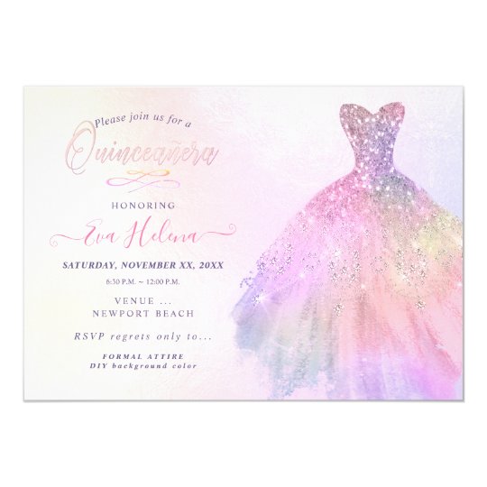 Quinceanera Glitzer Kleid Pastellzuckerwatte Einladung Zazzle De