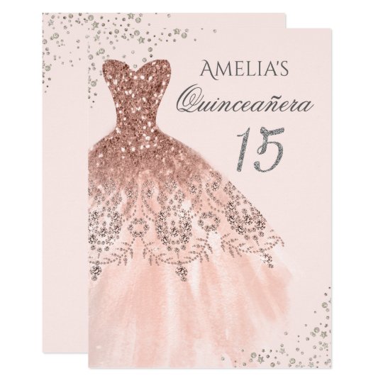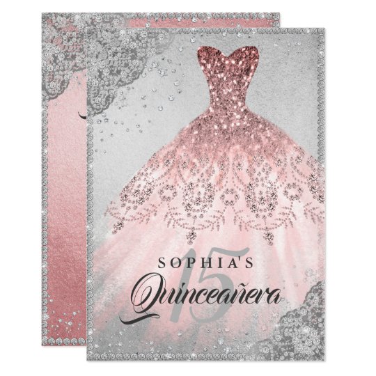 Rosen Goldsilber Diamant Schein Kleid Quinceanera Einladung Zazzle De