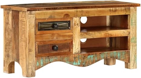 Rustikaler Tv Bank Industrie Vintage Mobel Kleiner Media Storage Schrank Massivholz Einheit Antik Indische Sideboard Retro Seite Niedriges Brett 2 Schubladen 1 Regal Holz Bauernhaus Stil Modern Gross Wohnzimmer Amazon De Kuche Haushalt