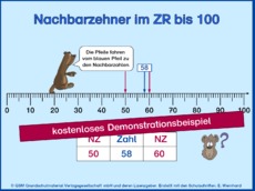 Nachbarzahlen im Zahlenraum bis 00 In eine Tabelle werden die Nachbarzahlen eingetragen, wobei immer von der Zahl in der Mitte ausgegangen wird Vorgänger, Nachfolger, Nachbarzehner, Nachbarhunderter und Nachbartausender.