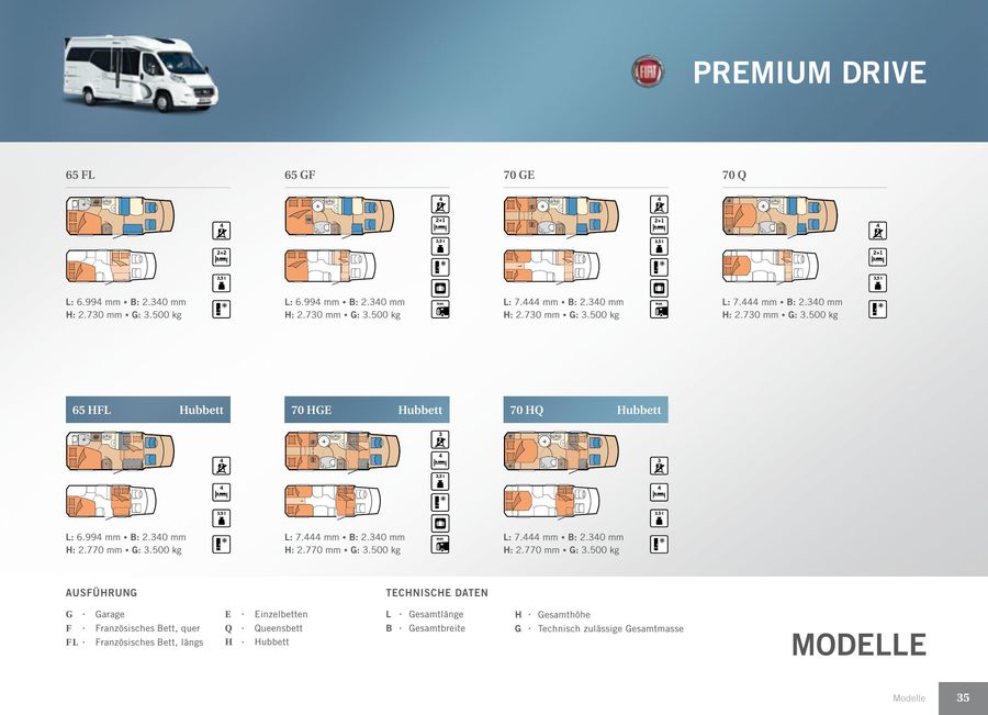 Hobby 65 HGE Fiche technique Hobby Profilé Premium Van Lit Pavillon 65 HGE 13 Porteur Renault Master 2,3 l 125 ch L x l x h 7,12 x 2,14 x 2,7 PTAC/CU (kg) 3500/370 Places CG/nuit/repas 4/5/4 Clim cabine Oui Carrosserie Aluminium Couchage permanent AR de. Por renovación de stock, liquidamos este vehiculo por debajo de precio de coste PVP antes sin el descuento (€) con impuestos y extras incluidos Oferta de ahora por solo €!!. Hobby CIBUSBordmanagement mit LCDBedienpanel LEDLichtsystem „Romantica“ TRUMAHeizung Combi 6 PREMIUM VAN 65 HGE 7116 2140 27 3500 3,5 t 4 4 Länge (mm) Breite (mm) Höhe (mm) TzG1 (kg) Gesamtlänge mm Gesamtbreite mm Gesamthöhe / Innenstehhöhe mm Technisch zulässige Gesamtmasse kg Leergewicht kg.