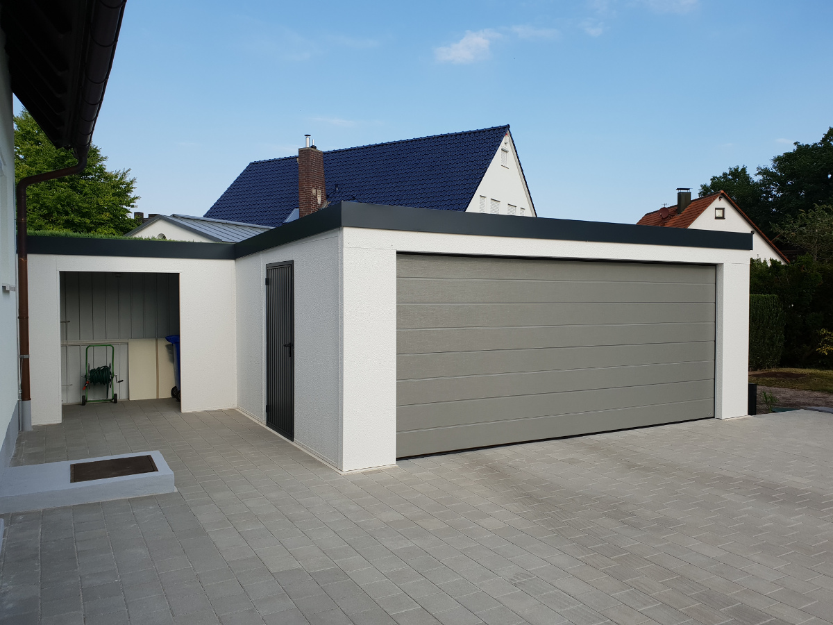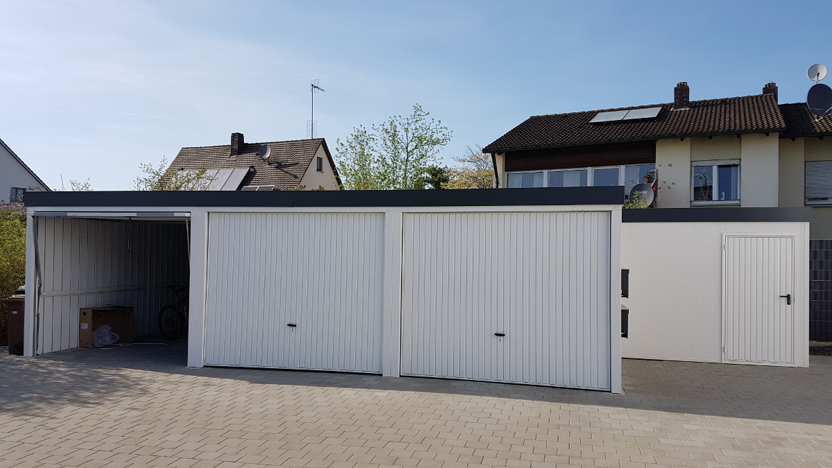 Stahl Doppelgarage Mit Sektionaltoren Gerateraum Hinten Integriert Carport Anbau News Brandl