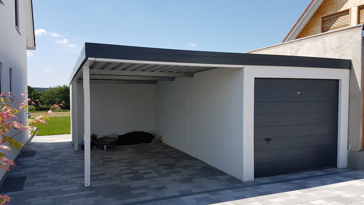 Einzelgarage Aus Stahl Mit Sektionaltor Anbau Carport Daneben Gerateraum Abstellkammer Hinten Quer News Brandl