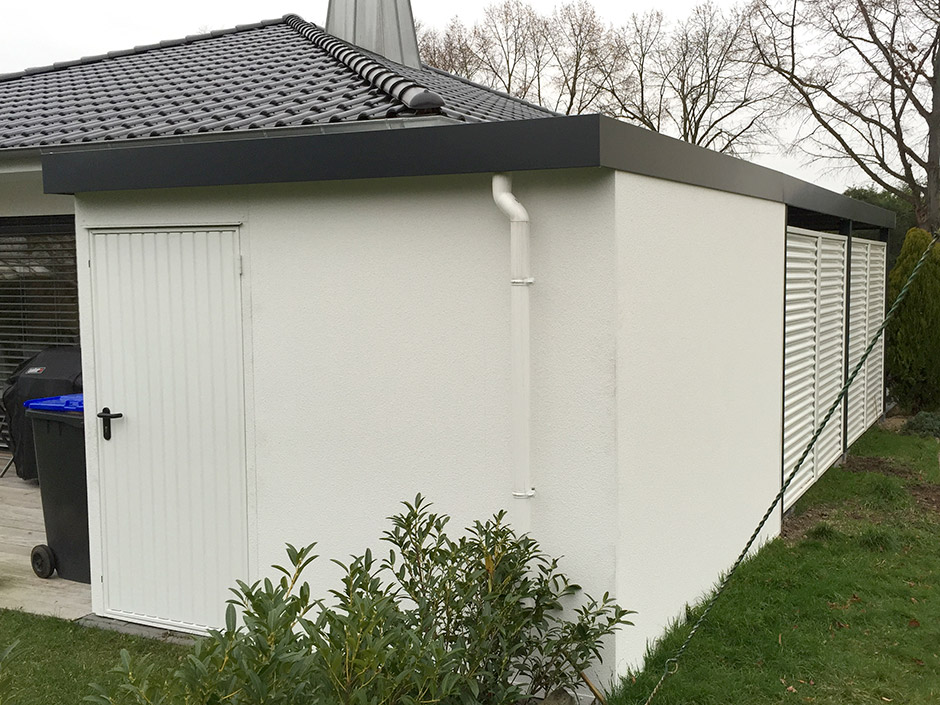 Einzelcarport Mit Gerateraum Verputzt Ruckseite Carceffo Moderne Carports Garagen