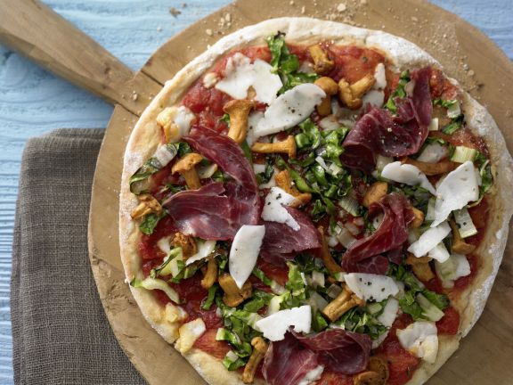 Pizza Mit Pfifferlingen Rauke Und Parmaschinken Rezept Lecker