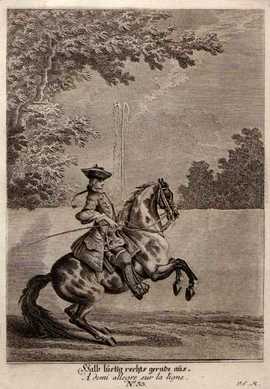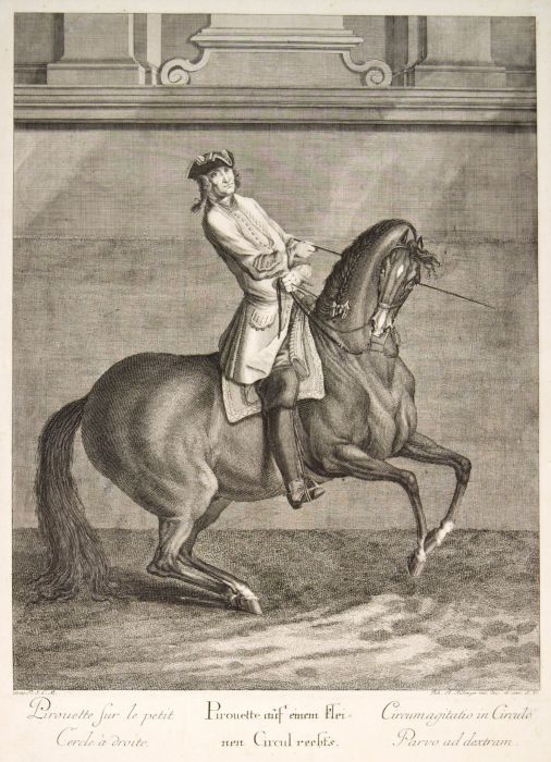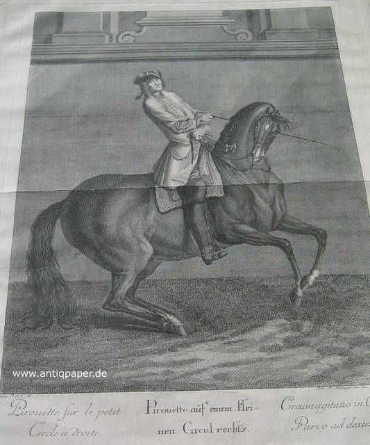 Reitsport Pirouette Auf Einem Kleinen Circul Rechts Kupferstich 1734 Details