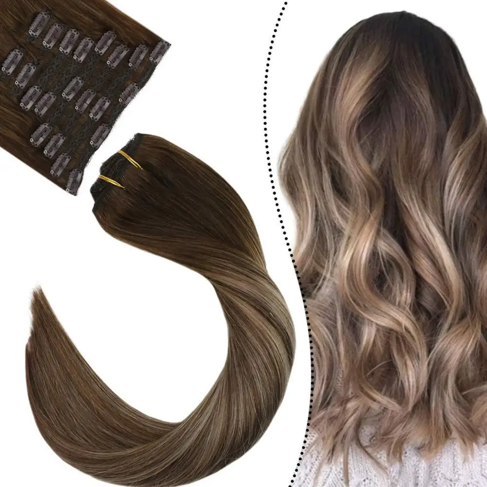 Ugeat Clip In Menschliches Haar Erweiterungen Realen Haar 14 22 Maschine Remy Menschenhaar Extensions Balayage Blonde Farbe Haar 1g 10 Schussen