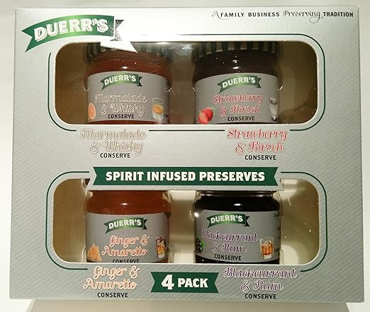 Nectarine with Lime and Cointreau;. Duerr's Spirit Infused Preserves Gift Box Strawberry & Kirsch, Ginger & Amaretto, Blackcurrant & Rum, Marmalade & Whisky Brand Duerr's 47 out of 5 stars 15 ratings Secure transaction Your transaction is secure We work hard to protect your security and privacy Our payment security system encrypts your information during transmission. SauerkirschAmarettoMarmelade Ein großes Lob Ich habe bisher nur Marmeladen mit einer Frucht probiert Aber mit Amaretto dazu ist das wirklich ein Hochgenuss MIt meinem Thermi werd ich nun auch mal Marmeladen mit verschiedenen Früchten machen.