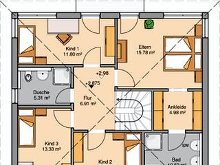 Haus mit Einliegerwohnung vielfältig nutzbar Egal, ob mit Oma und Opa als Altenteil oder für die Bewohnung mit zwei Parteien Ein Haus mit Einliegerwohnung bietet Ihnen viel Flexibilität in den eigenen vier Wänden Wie Sie kostengünstig Ihr Haus mit Einliegerwohnung bauen und welche Angebote es gibt, dazu finden Sie mehr auf unseren Seiten. Einfach Wände zeichnen, Fenster, Türen und Möbel einfügen, Materialien wählen – speichern und Grundrisse ausdrucken. Grundriss Einfamilienhaus als Landhaus mit Krüppelwalmdach 5 Zimmer, 180 m², Erdgeschoss mit Erker & Kamin, Obergeschoss mit Galerie Haus bauen Ideen Grundrisse Fertighaus SH 180 von ScanHaus Marlow HausbauDirektde.