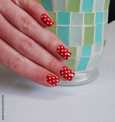 Nageldesign 60ies Look Mit Rot Weiss Gepunkteten Fingernageln Kaufen Sie Dieses Foto Und Finden Sie Ahnliche Bilder Auf Adobe Stock Adobe Stock