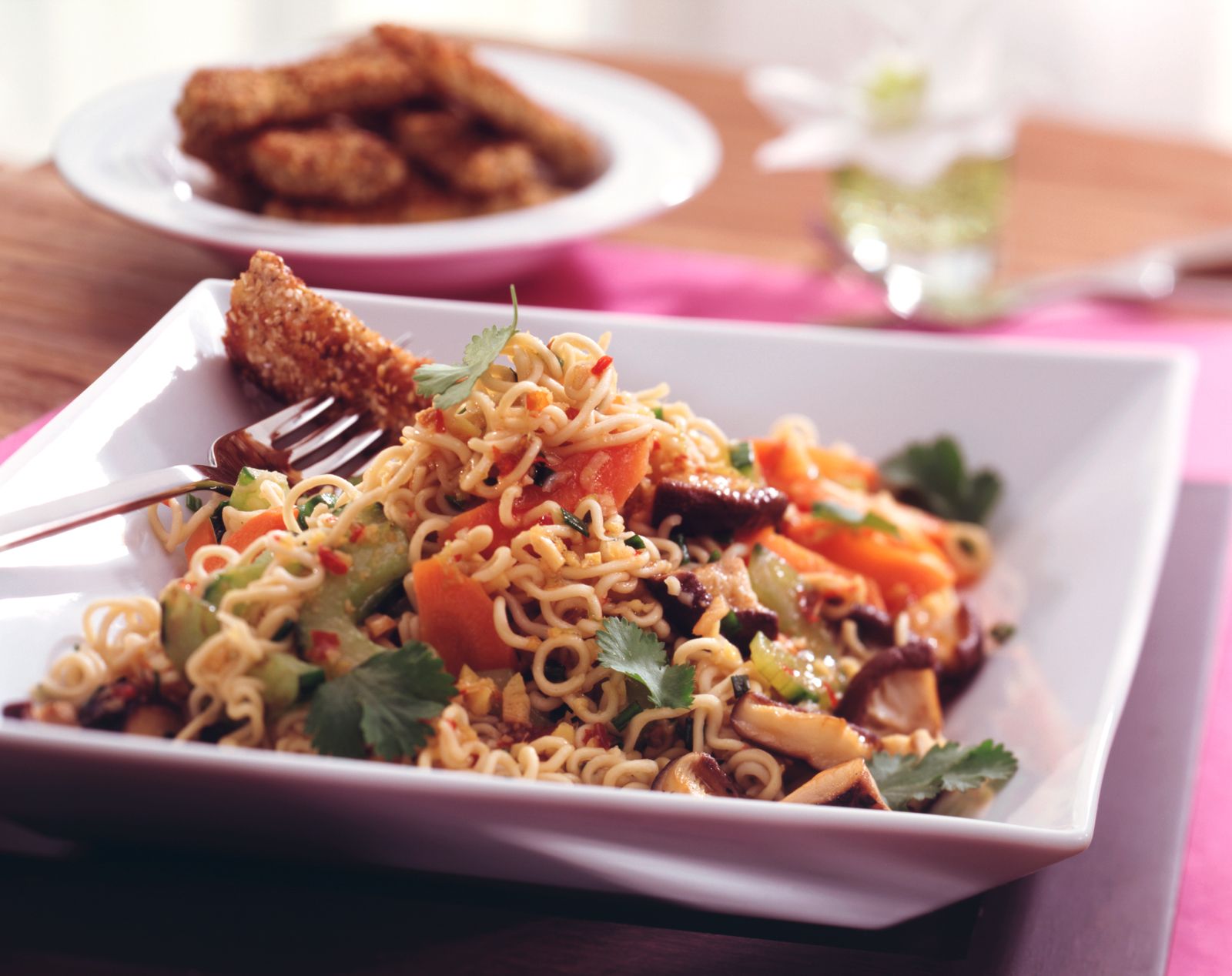 Mariniertes Schnitzel Aus Dem Wok Mit Nudeln Und Gemuse Rezept Kochbar De