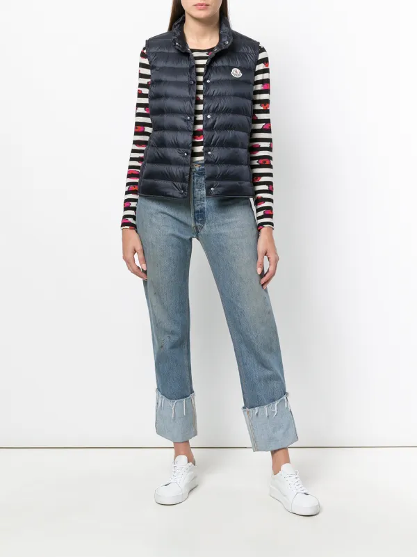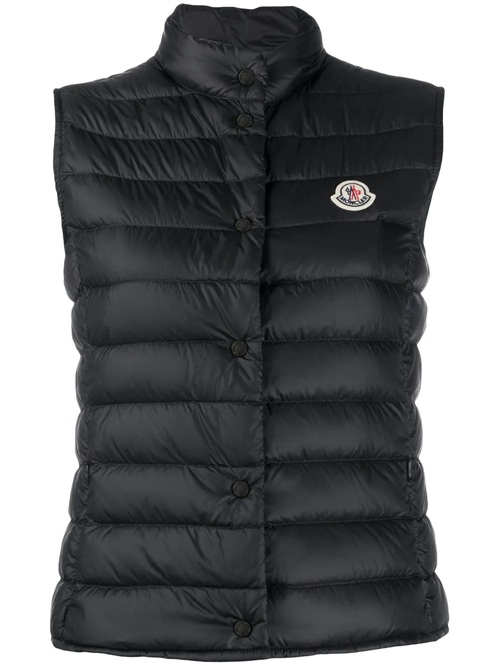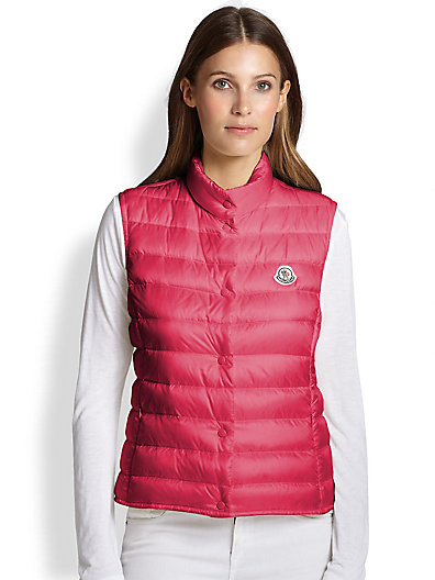 Snap closure, logo patch at left chest. Buy Moncler Liane Gilet Vest at SaksFifthAvenue Shop our collection of Moncler Vests online and get free shipping!. Moncler "Liane" quilted gilet Stand collar;.