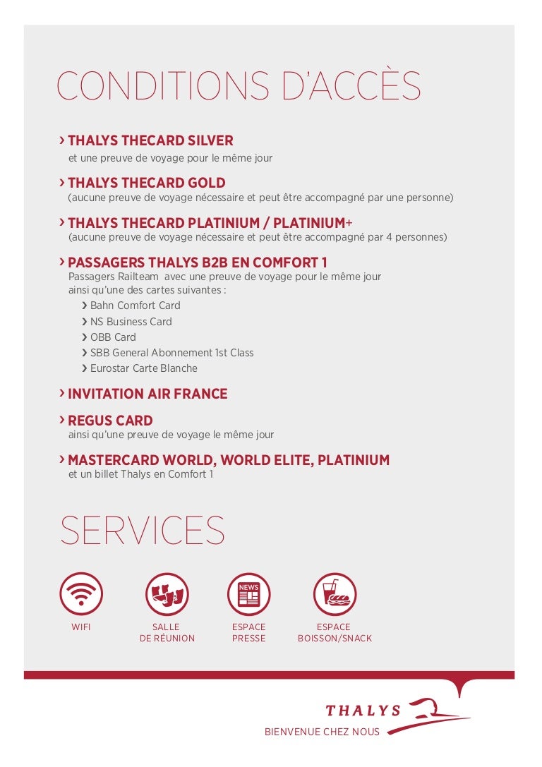 All major credit cards are accepted with a minimum spend of €1 If travelling with small children, please note that carriages 7, 17 and 27 provide a changing table, a washbasin and a bottle warmer Bicycles can be brought onboard Thalys trains, free of charge. There are special Thalys offers for passengers travelling with 3 or more people Handy if, for example, you are travelling with your grandchildren or going out and about with a group of friends Handy if, for example, you are travelling with your grandchildren or going out and about with a group of friends. Access your My Thalys World account, your loyalty card and your.