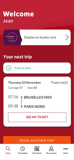 Suggestions are available, browse the list with the cursor keys from top to bottom. The Thalys app supports you throughout your trip Easily consult the train schedules Book your tickets in a few clicks Modify or cancel your reservation Create a My Thalys World account and benefit from exclusive advantages!. Access your My Thalys World account, your loyalty card and your tickets without internet connection Access your My Thalys World account and your loyalty card.