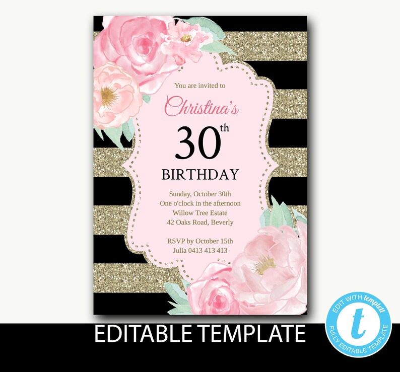 30 Geburtstag Einladung Sofortiger Download Floral Geburtstag Etsy