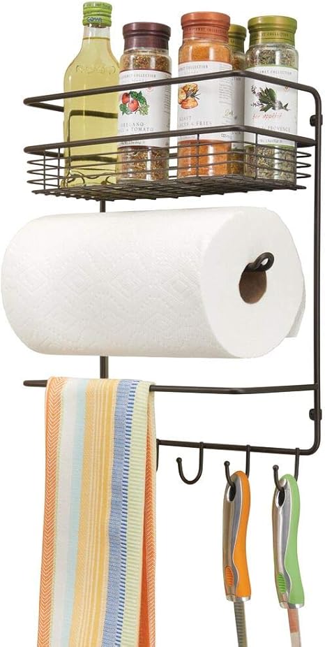 Amazon De Mdesign Kuchenrollenhalter Platzsparender Papierrollenhalter Zur Wandmontage Mit Integriertem Gewurzregal Aus Stahl Praktischer Kuchenhelfer Bronzefarben