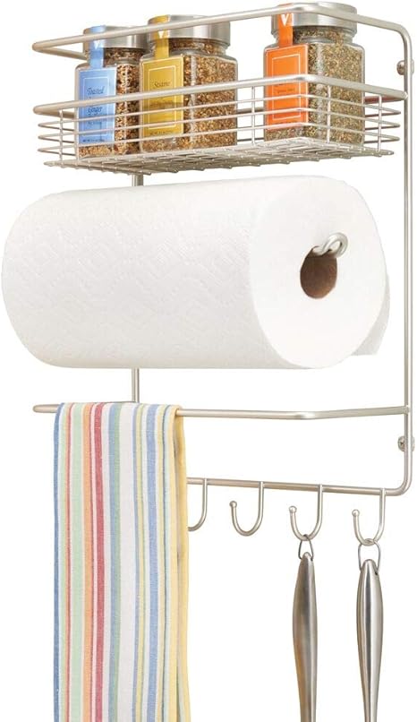 Amazon De Mdesign Kuchenrollenhalter Platzsparender Papierrollenhalter Zur Wandmontage Mit Integriertem Gewurzregal Aus Metall Praktischer Kuchenhelfer Mattsilberfarben