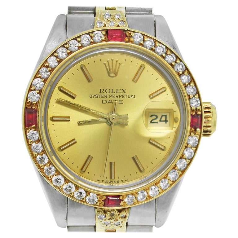 1981 Ladies Rolex 6917 Oyster Perpetual Datejust Watch Diamond Ruby Bezel 2 Tone Oyster Perpetual Datejust Diamond Watch Rolex Diamond