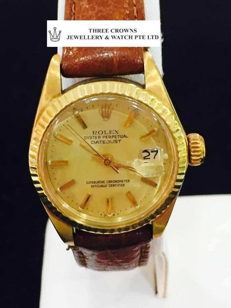 Fine Preowned Rolex Watch Certified preowned Dress Rolex Datejust 6917 watch is made out of yellow gold on a 18k bracelet with a 18k Deploy buckle This Rolex watch has a 26 x 32 mm case with a Round caseback and Gold Diamond dial It is Gray and Sons Certified Authentic and comes backed by our 24month warranty. Buy Rolex Datejust 6917 watches Browse our collection and compare Rolex Datejust 6917 prices Warranty and Free shipping Chronoexpert 44 3514 4601 US Buy watch Login About us Blog Menú Top brands Rolex Omega. Brand Rolex Range Datejust Lady Model 6917 Gender Ladies Movement Automatic Case Size 26 MM Case Material 316 Grade Stainless Steel & Yellow Gold Bracelet Material Leather – Black Dial Colors Champagne.