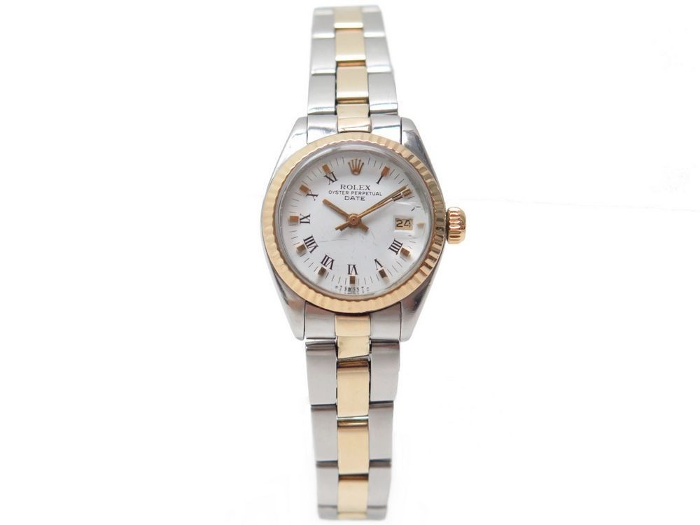 Ladies Rolex Date 26mm 6917 Two Tone Gold Steel White Roman Watch Date Collectors1946 Com