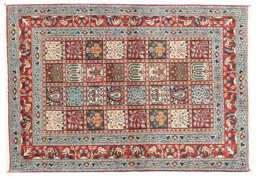 It is highly popular either for its Herati or Garden pattern Over centuries knotters designed these rugs by inspiration from beautiful motives from their environment Moud carpets combine the most traditional way of crafting Persian carpets with historic and contemporary design elements. Moud Teppiche werden mit asymmetrischen Knoten und oft mit weicher Wolle von guter Qualität gewebt Manchmal sind sie mit HeratiMustern verziert, zeigen aber nicht immer ein klassisches Medaillondesign (Moud Mahi) Oder sie zeigen Gartenmotive (Moud Garden), bei denen der Teppich in kleinere Quadrate unterteilt ist, die jeweils eine eigene Geschichte darstellen, ähnlich wie bei BakhtiariTeppichen. Moud rugs are amongst the most beautiful and detailed carpets made in Iran They have the unique characteristic for a carpet that has a busy pattern of making a room appear bigger by giving it more depthBased on cotton, with a soft, fine woollen pile Moud designs are fairly distinctive.