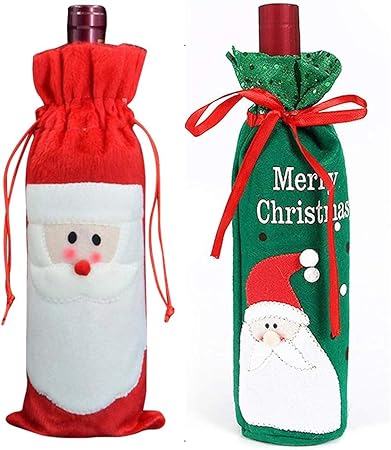 Ibluelover 2 Stuck Weinflaschen Taschen Weihnachten Champagner Taschen Weihnachtsmann Dekoration Fur Abendessen Fur Weihnachtsfeier Hulle Wein Verpackung Kostum Amazon De Kuche Haushalt