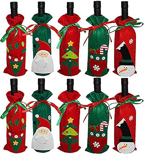 10 Weihnachten Weinflaschen Geschenktuten In 5 Designs Premium Vliesstoff Robust Wiederverwendbar Xmas Wein Flaschentuten Verpackung Fur Partys Tischdekoration Geschenke Fur Familie Freunde Amazon De Kuche Haushalt