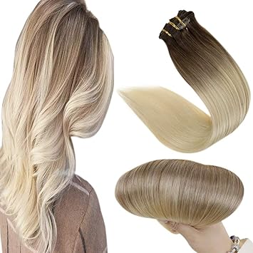 Easyouth Clip Auf Haar Fur Frauen 22 Zoll 100g Packung Farbe 3 8 613 Mittelbraun Mit Aschbraun Und Gelbblond Echthaar Clip In Balayage Extensions Amazon De Beauty