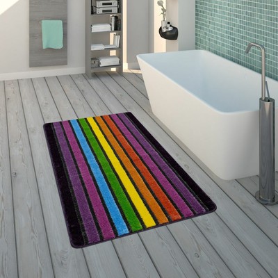 Badematte Kurzflor Teppich Fur Badezimmer Mit Streifen Design 3 D Look In Bunt Ebay