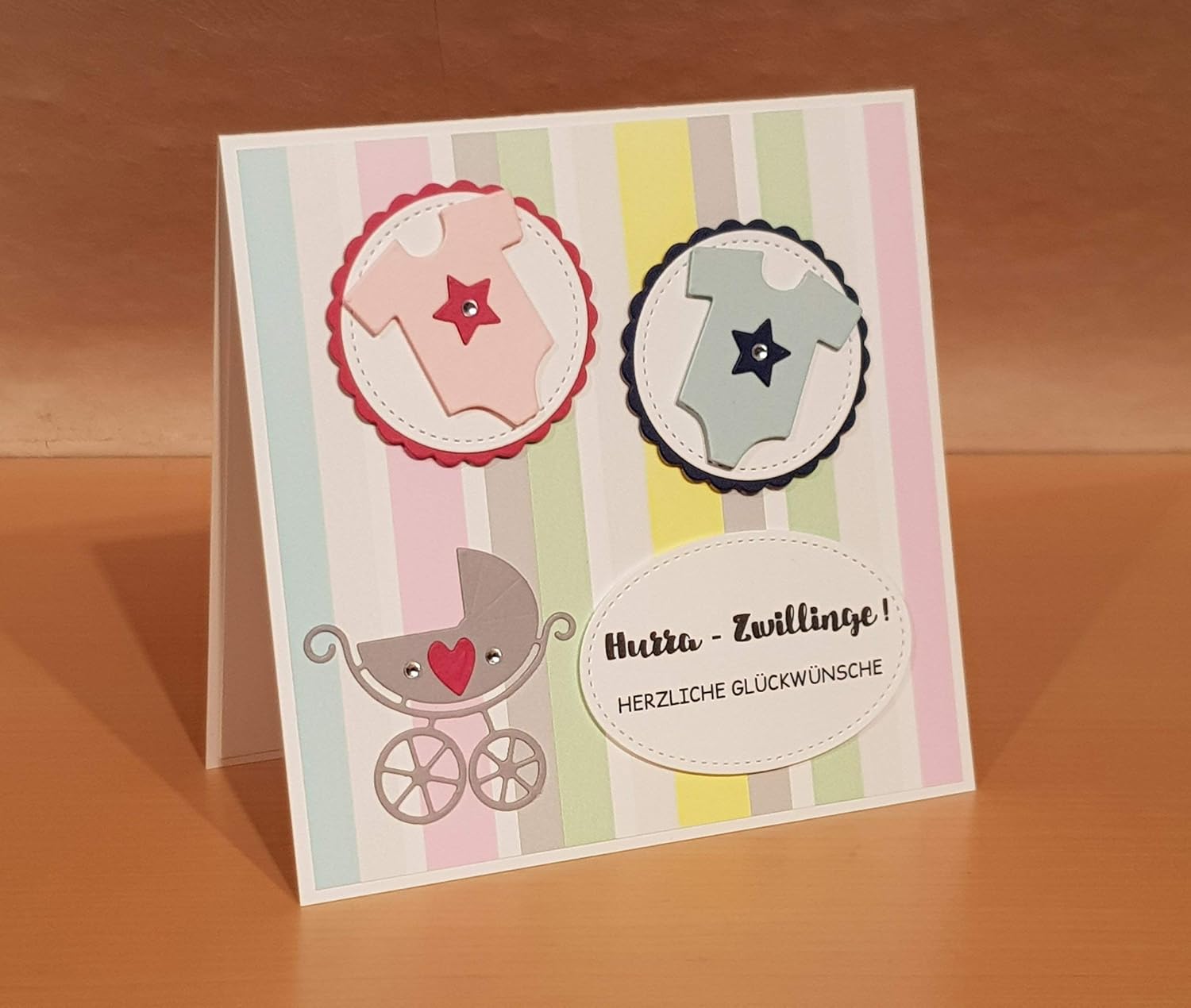 Karte Zur Geburt Babykarte Zwillinge Zwillingskarte Madchen Junge Handarbeit Amazon De Handmade