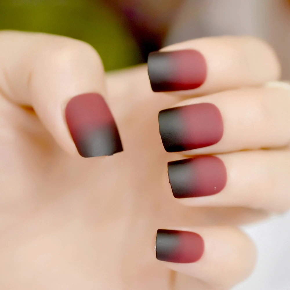 Gradient Short French Nail Tips Black Red Wine Round Matte Design Kit False Nails Art Decoration For Women Makeup Tool Z858 False Nails Aliexpress