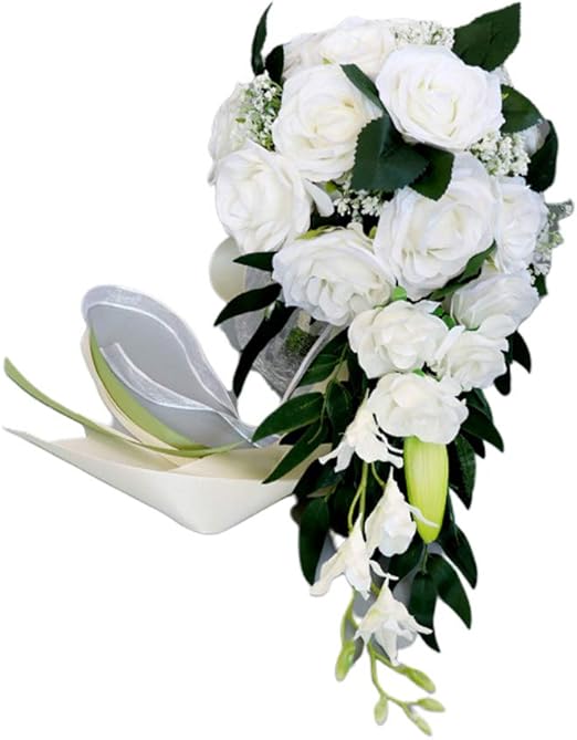 Amazon De Wanfor Brautstrauss Romantischer Brautschmuck Wasserfall Bouquet Kunstliche Rosen Blumen Mit Band