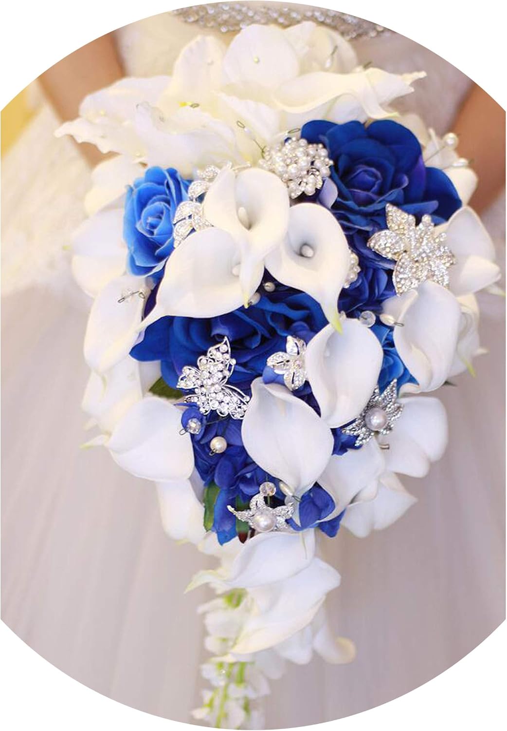 Grosshandel Brautstrausse Halter Blau Wasserfall Weisse Calla Lilie Kristalle Brautstrauss Fur Brautjungfer Corsage Brosche Bouquet De Mariage Von Zhongfuwedding 9 Auf De Dhgate Com Dhgate
