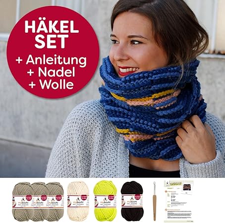 Myboshi Hakel Set Rundschal Eniwa Aus No 1 Anleitung Wolle Mit Passender Hakelnadel Elfenbein Schwarz Ocker Blaubeere Amazon De Kuche Haushalt